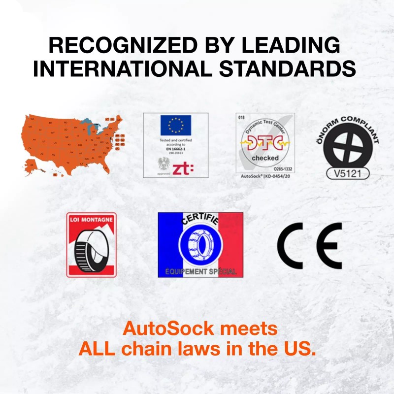 - Designed Through American & European Standards - AutoSock is a legally recognized brand & product internationally.