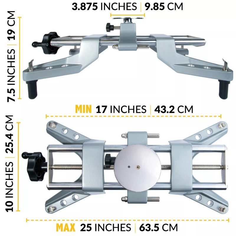 - ELIMINATE RUNOUT: To ensure the utmost accuracy when using our clamp, follow this tip: Place a bubble leveler on the rim's outer edges and position it on the clamp's adapter plate, comparing both readings to fine-tune your adjustments for the best alignment.