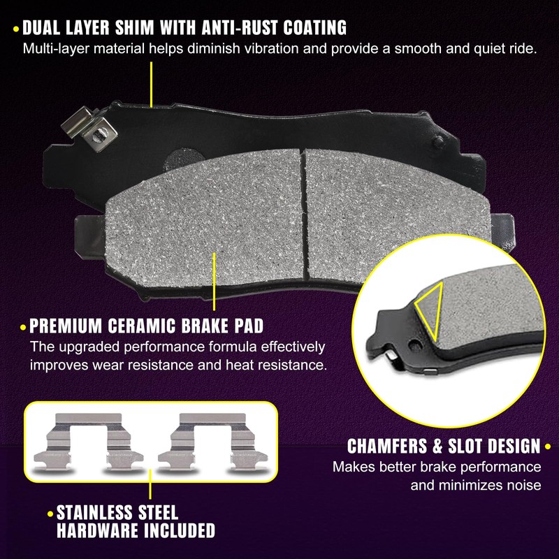 - Bundle Includes: 4x Front and Rear Drilled and Slotted Brakes Rotors - 31479 31257; 4x Ceramic Brake Pads with hardware - 1336 914