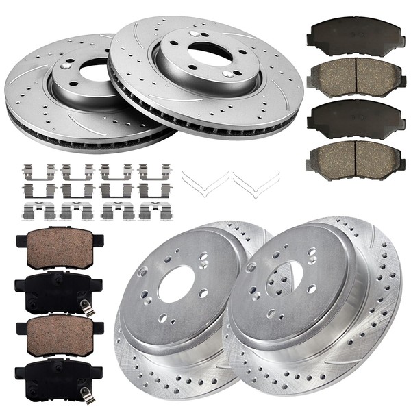 AUTOSTEADY 11.10" Front and Rear Brake Kit Replacement for 2008 2009 2010 2011 2012 2013 2014 2015 2016 2017 Honda Accord, Drilled and Slotted Brakes Rotors and Ceramic Pads 31479 31257 1336 914
