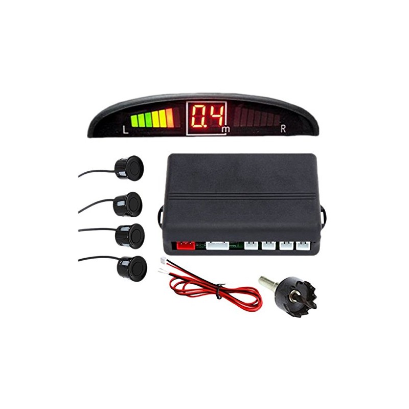 AUTOTCBG Rear Reversing Car Parking Sensors 4 Sensors Kit Audio Buzzer Alarm LED Display, DC 12 V