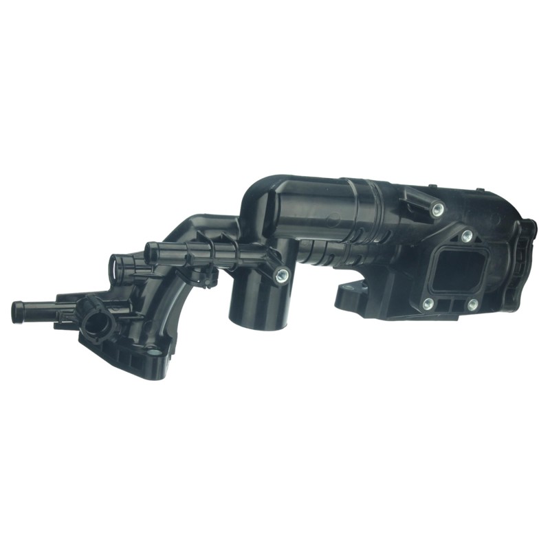 - Thermostat housing assembly is manufactured to factory housing dimensions for easy bolt-on installation and reliable hose connections