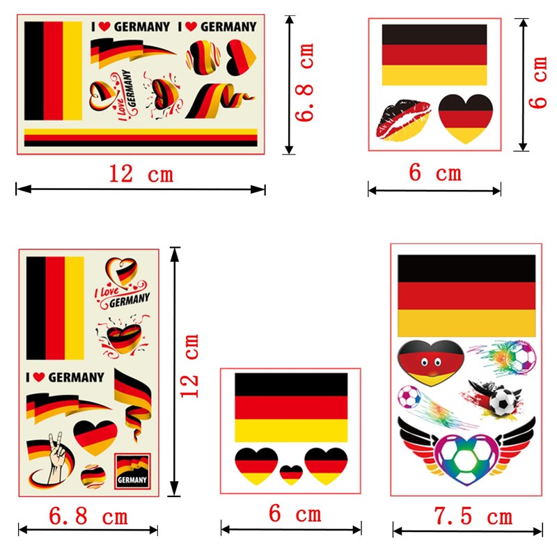 - ⚡ Flag tattoos are suitable for all sporting events such as the World Cup, European Championship, Olympic Games, General Sports Events, Tournaments, Bundesliga and other international competitions.