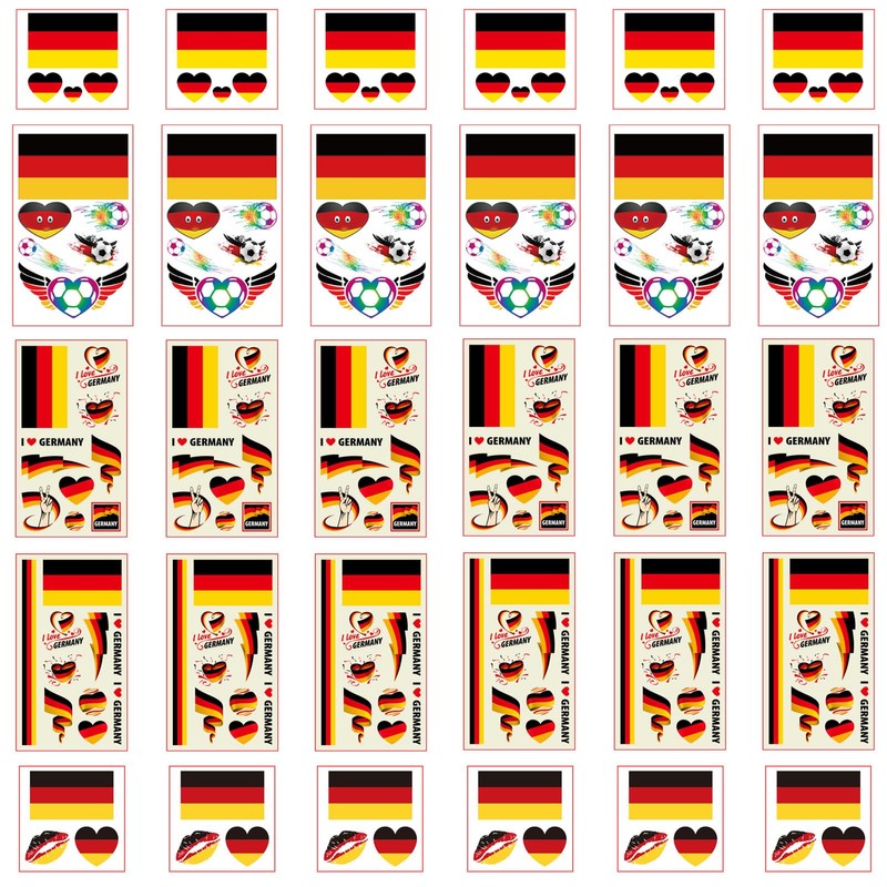 Autousa 30x Temporary Tattoos of Germany Flag for International Competitions 2024 European Championship Olympic Games Football World Cup Face Waterproof Flags Stickers (30 Sheets)