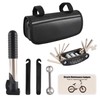 - Bike Tool Bag: Includes 16 in 1 multi-tool (allen wrench, screwdriver, socket wrench, solid & spoke wrench ), tire repair box, bone wrench, mini pump and bike bag; Fix flats and adjust components on-the-go