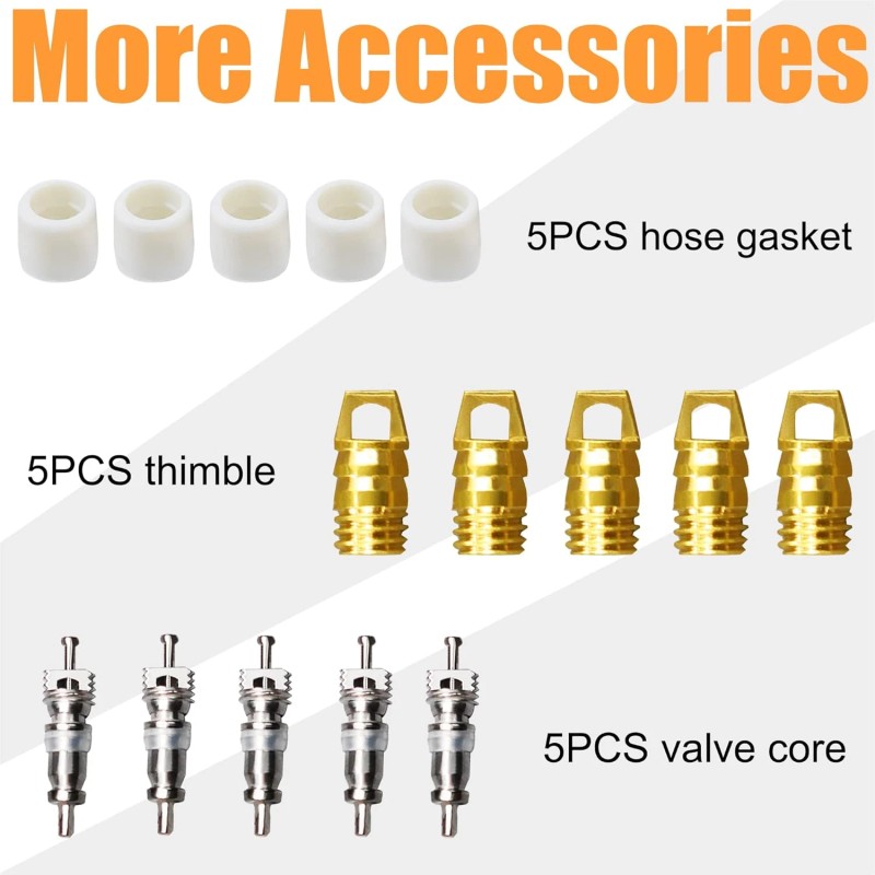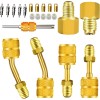 • 【Package】--- 2 x Angled R410a adapter, 2 x straight R410a adapter, 1 x Valve Core Remover, 5 x R134a hose gasket, 5 x valve core, 5 x Thimble, 1 x vacuum pump adapter 1/4 Flare Female to 1/2 Male, 1 x R134A refrigerant tank adapter 1/2 Female to 1/4 Male Flare. Father's Day gift.