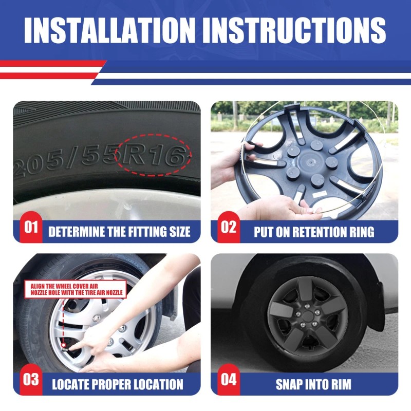 ---Easy Installation: Align the grooves of the adjustable steel retaining ring with the grooves of the hubcap and align the hubcap with the tire valve before snapping it onto the wheel.
