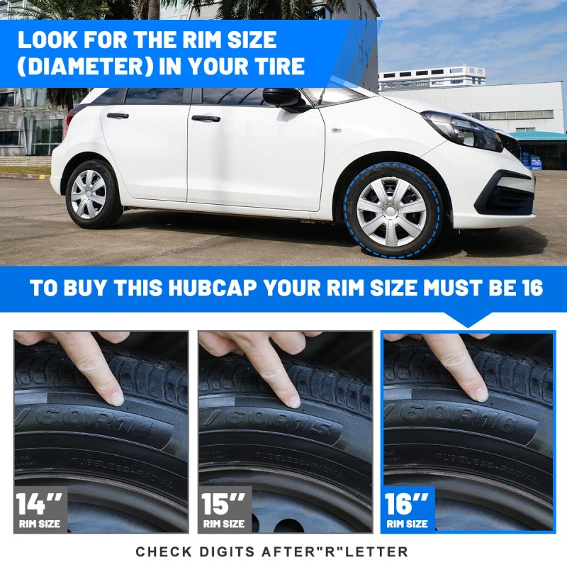 AUTOWIKI 16" Set of 4 Hubcaps Wheel Covers Snap On Full Hub Caps fit R16 Tire & Steel Rim