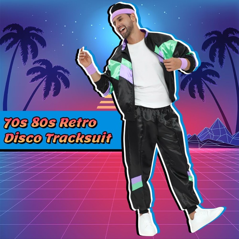- Cosplay Occasions --- A cool dress for any 70’s 80's 90's party. This retro 80's tracksuit outfit is perfect for parties, casual, carnival, nightclub, pub, metallic hippie clothes, Halloween, music festival clothing, shows and performances.