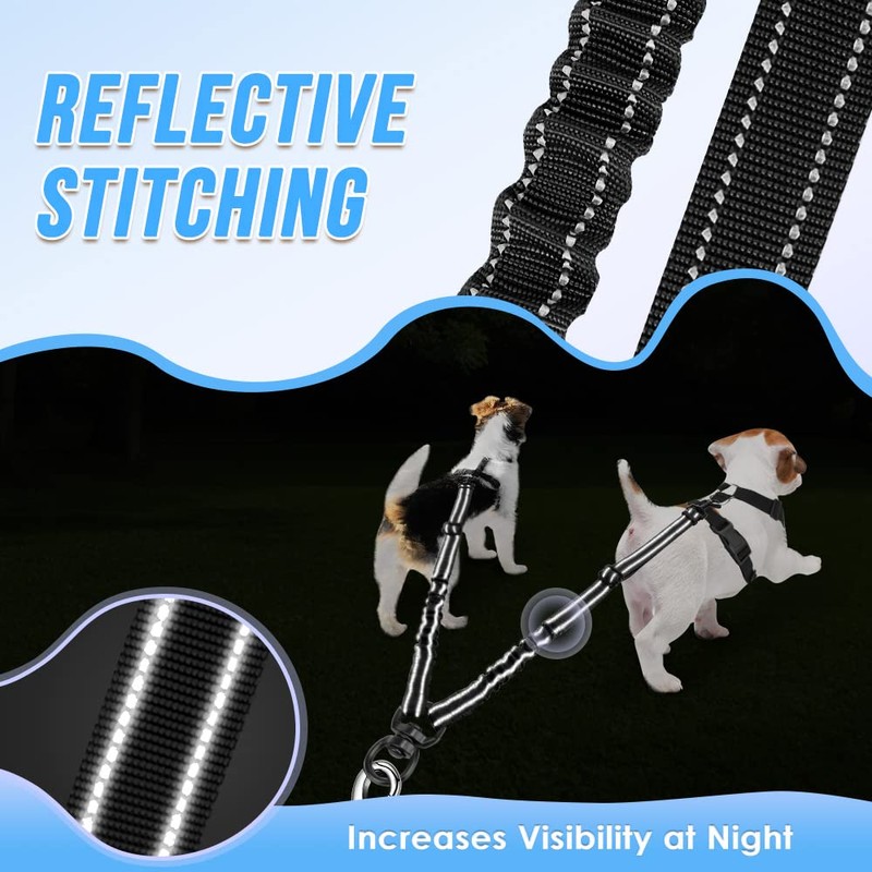 - Adjustable Length --- With buckle on the straps and the elastic bungee inside, this dual dog leash can be adjusted from 18 inches to 24 inches. Good adjustable length so the dogs can get themselves comfy without restricting themselves, suitable for all medium and large dogs combination.