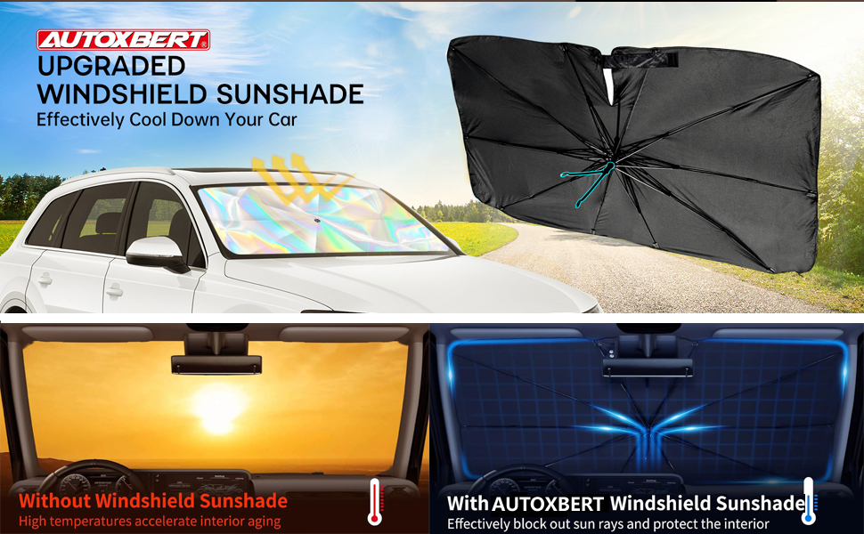 AUTOXBERT Car Windshield Umbrella Sunshade UV-Heat Block Sun Shade Front Window Cover