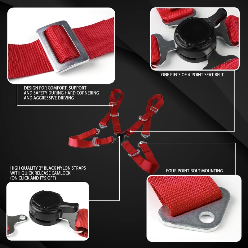 AUTOZENSATION Saftey Seat Belt Racing Harness, Universal Red 4 Point Cam lock