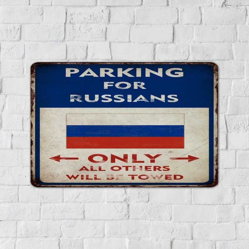 Autravelco Parking for Russians Only All Others Will Be Towed Custom Metal Sign Decorative Dining Room Signs Private Driveways Wall Décor Aluminum Metal Sign for Bedroom Bathroom Cabin 12x18 Inch