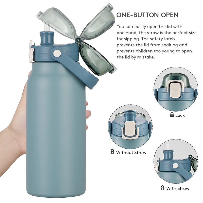 - PRACTICAL AND COMPLETE ACCESSORIES: The stainless steel water bottle comes with an adjustable leak proof cover to prevent accidental leakage; Drinking through a straw makes drinking easier.