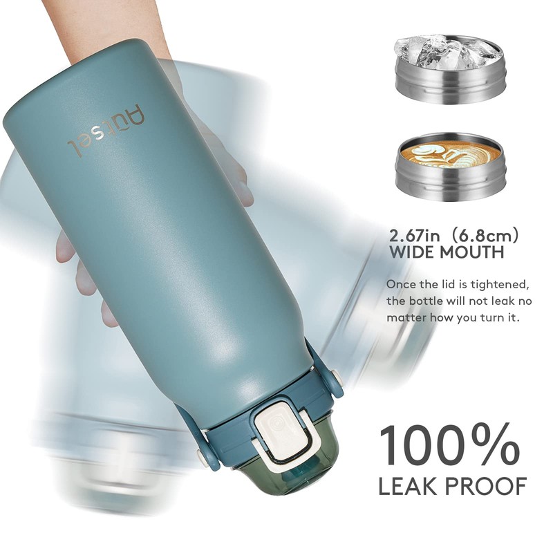 - DOUBLE WALL VACUUM INSULATION: Autsel insulated water bottle can keep the liquid cold for 24 hours and keep it hot for 12 hours. It's a great insulator for summer and winter.