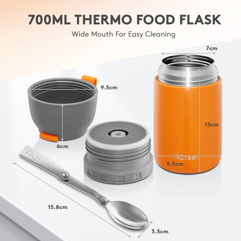 Autsel Food Flask for Hot Food 700ml Thermal Lunch Box, 24oz Soup Flask Stainless Steel Insulated Food Container with Spoon