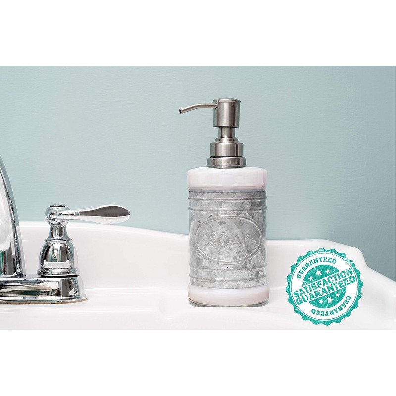 - CLASSIC GALVANIZED FINISH - Keep hands squeaky clean while delighting your eyes with an electrifying freestanding Hand Soap Dispenser and Lotion Dispenser Set . Heavy-duty yet beautifully coated to prevent corrosion & rust for years. Sturdy AND pretty farmhouse decor touch !