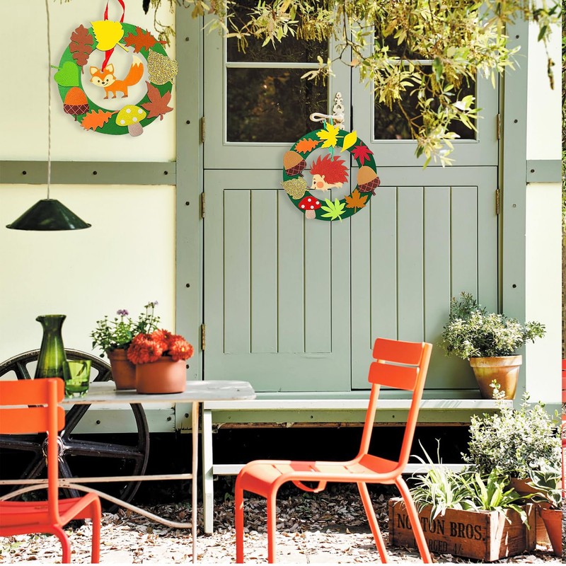 Autumn Crafts for Children, Felt Craft Set Autumn with Autumn Wreath, Hedgehog, Squirrel, Fox, Autumn Leaves Creative Set, DIY Animal Decoration Pendant, for Autumn Thanksgiving Theme Party Craft