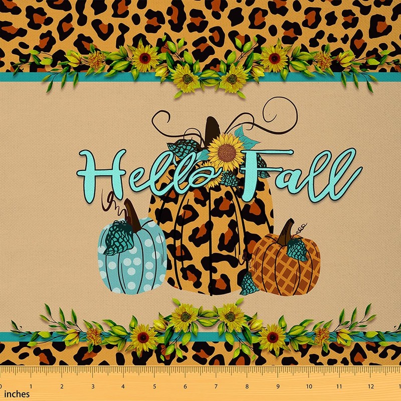 Autumn Plants Themed Upholstery Fabric by The Yard, Pumpkin Reupholstery Fabric for Chairs,Pumpkin Day Leopard Room Decorative Fabric for Outdoor and Home DIY Projects, 3 Yards, Brown