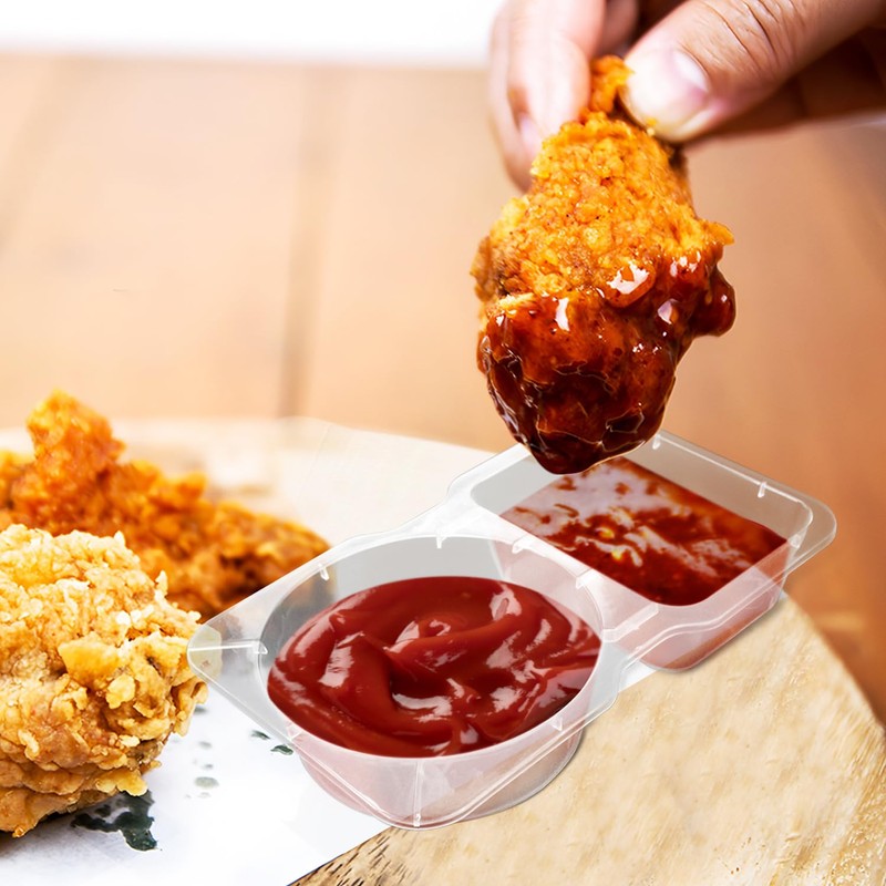 - LEAK PROOF DESIGN:The sauce mate dual compartment with lid is carefully crafted with a leak proof effect. When you press the lid, it can seal the container mouth to prevent condiment, sauces, or snacks from leaking out.