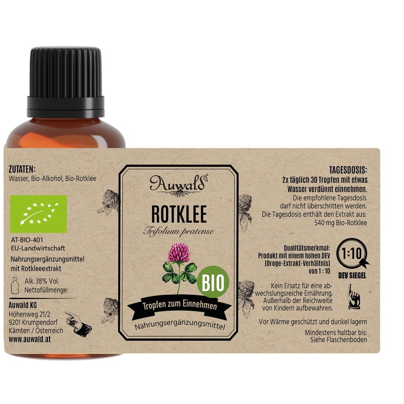 Auwald NEU! Auwald Rotklee Tropfen BIO C Hochwertiger Auszug, Extrakt, Essenz & Tinktur C 100% BIO Landwirtschaft, Frei von knstlichen Zus?tzen und Farbstoffen, Hergestellt in ?sterreich C 100ml