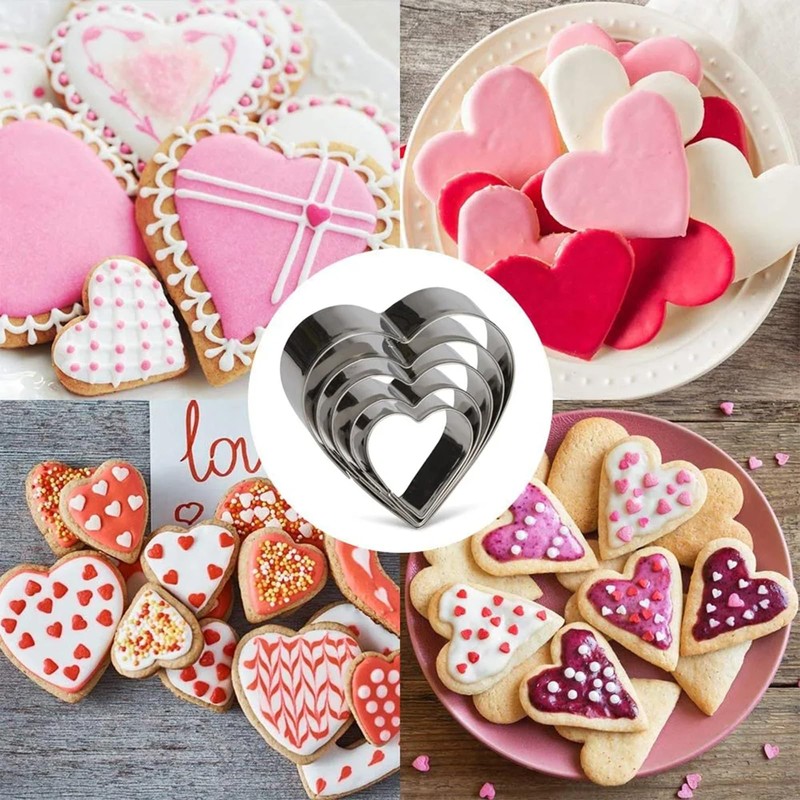 auwiyd 5 PCS Heart Cookie Cutter Set Valentine Biscuit Mousse Heart Shapes DIY Baking Tools Valentines Cookie Cutters Pastry Cutters for Holiday Birthday Party