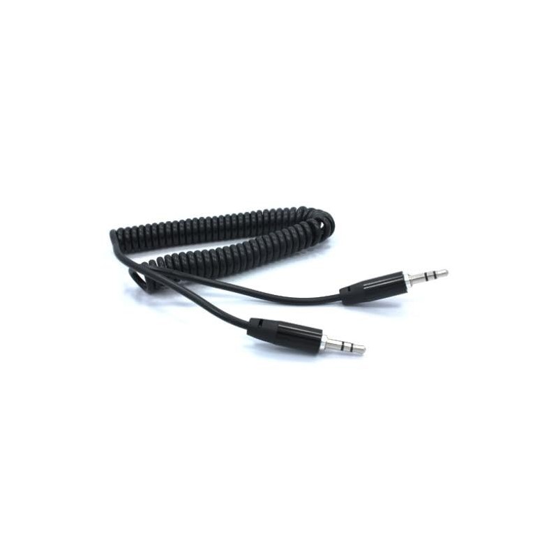 - Space saving Coiled Cable with less tangle extends for more convenience. Male to Male 3.5mm Auxiliary cable.