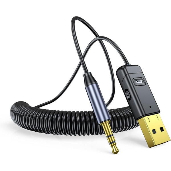 Aux Wireless Adapter, Automotive USB 2.0 to 3.5mm Jack Kit, Aux to Bluetooth 5.0 Adapter for Handsfree 3.5mm Bluetooth Receiver, Compatible with Car and Home Audio