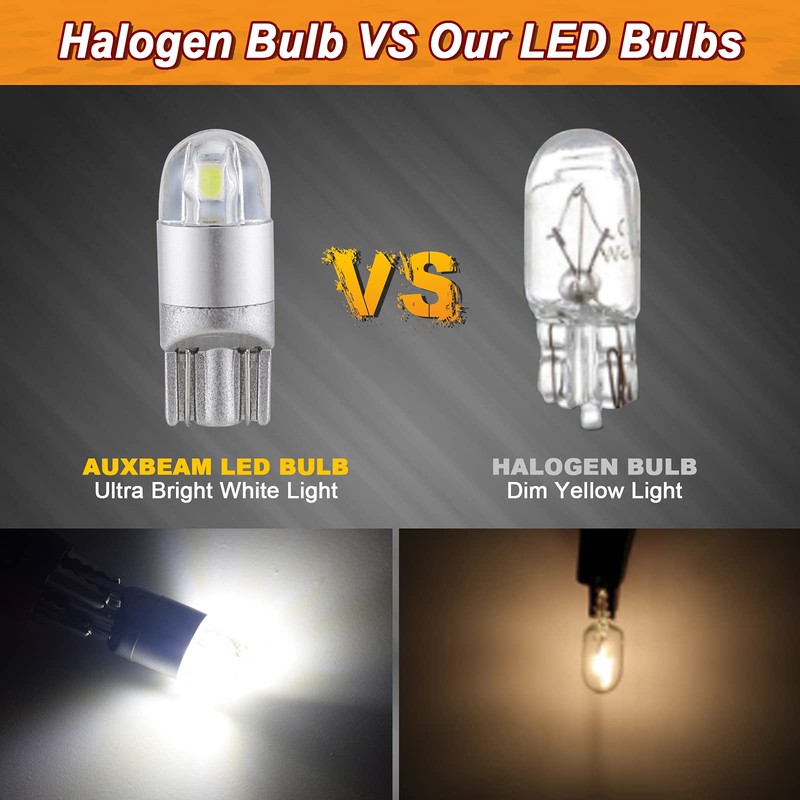- Application: 10pcs auxbeam white 194 led bulbs, these white 194 led bulbs can fit many positions: License Plate Light / Interior Door Light / Parking Light / Side Marker Light/ Trunk Cargo Light / Dome Light / Courtesy Light / Map Light / Glove Box Light...
