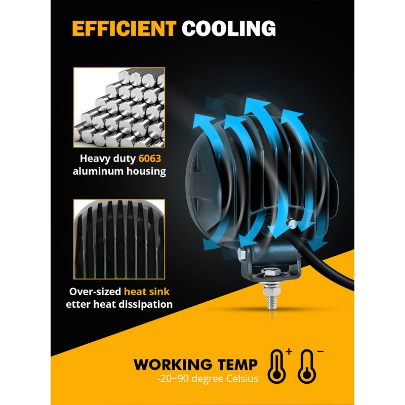 - 【LAST OVER 50,000 HOURS】Made of thickened 6063 diecast aluminum heat sinks, over sized heat-sink and breathing vent make lights fast running cooler. Even in harsh driving condition, it can still maintain an impressive 50,000 hour average life span.