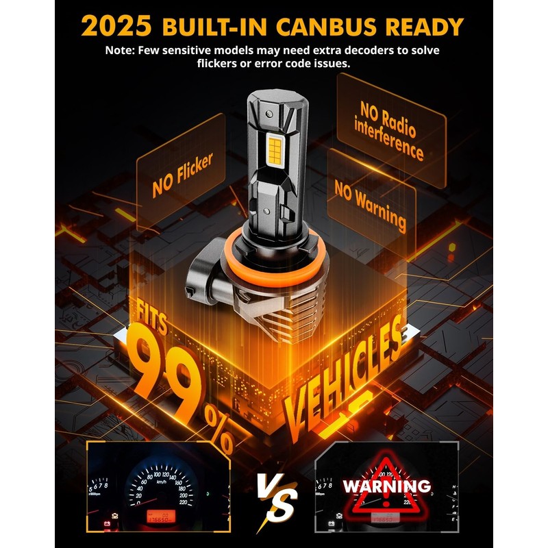 • 99% Super Compatible: With built-in driver, these H11 fog lights can directly alleviate decoding problems, compatible with 99% vehicles without error, flickers. Please note that 1% sensitive vehicle models may still require decoders. If unluckily any such issues happened, please message AUXBEAM for free help until the problem is solved