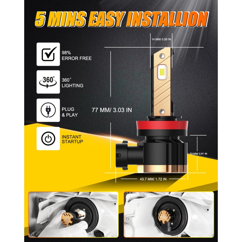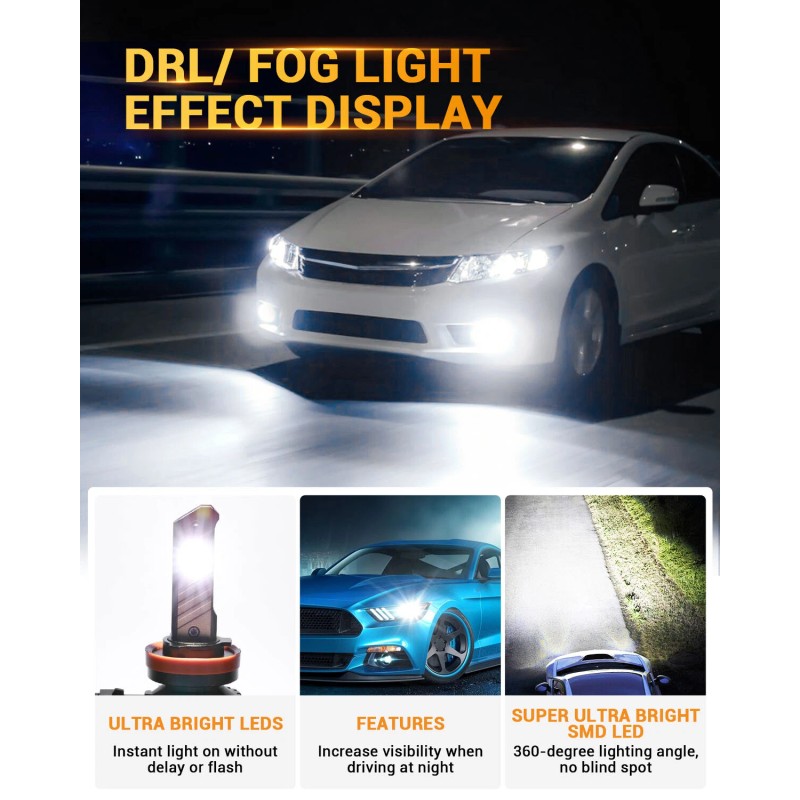 1. Top 3570 Chips, 1: 1 halogen light with high illumination 3570 LED chips. Good light type enhances your visibility on rainy, snowy, foggy days with 8000 lumens light output.