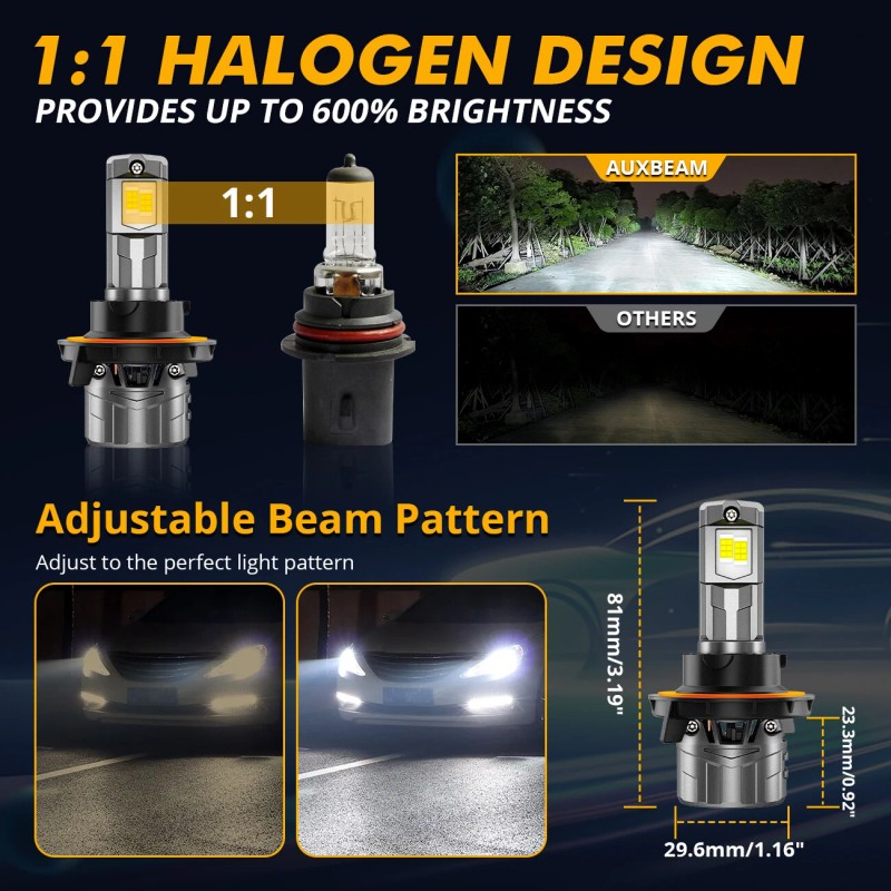 AUXBEAM H13 9008 LED Headlight High Low Beam Bulbs 100W 28000LM White Canbus 1:1