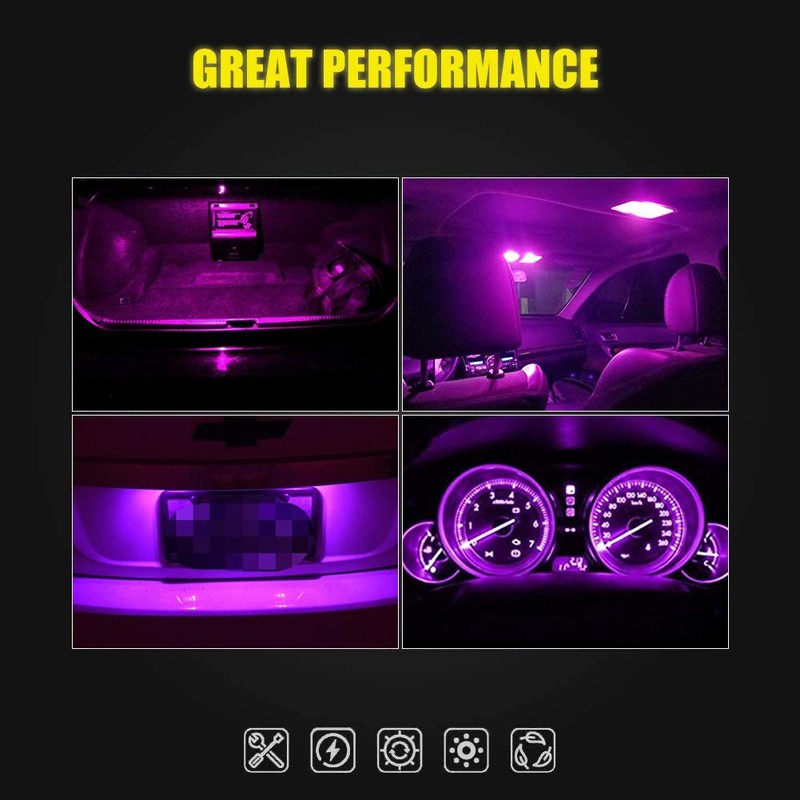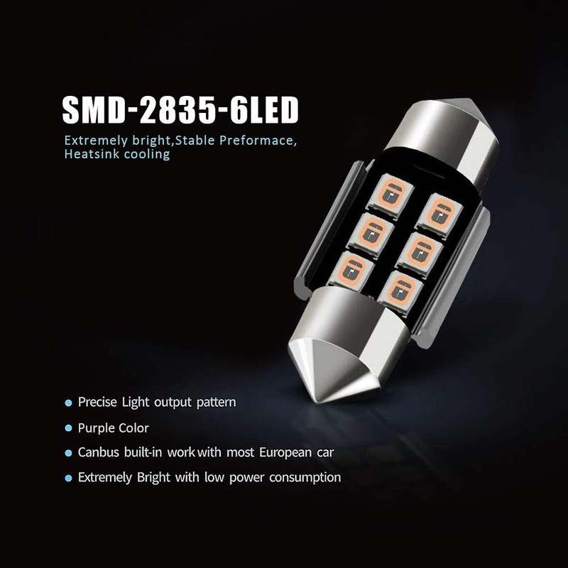 LED type: 6pcs 2835 SMD Chips, Voltage: DC 12V, Power: 1.7W/PC, Lumen: 300LM/PC, Current: 0.11±0.01A, Dimensions: 1.22inch(31mm) * 0.47inch (12mm), Lifespan: up to 30000 Working Hours, Color: Purple (Set of 6)