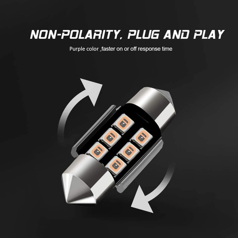 AUXLIGHT DE3175 DE3021 DE3022 3175 31MM 1.22”Festoon Canbus Error Free LED Interior Light Bulbs Purple, Super Bright 6SMD Chips for Dome Map Door Courtesy License Plate Lights (Pack of 6)
