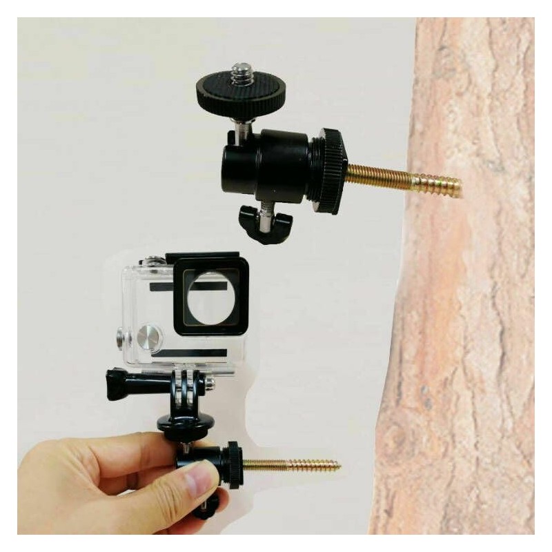 - Make it easy to move your cameras with this Swivel Tree Mount. Set up several pre-season and change them quickly and easily if needed, as the game will display standard 1/4" - 20 thrunning end for many action cameras with less time and interference of the area you want torecord. Mounting at different heights and angles for the desired field of view. For lightweight action cameras and smartphones.