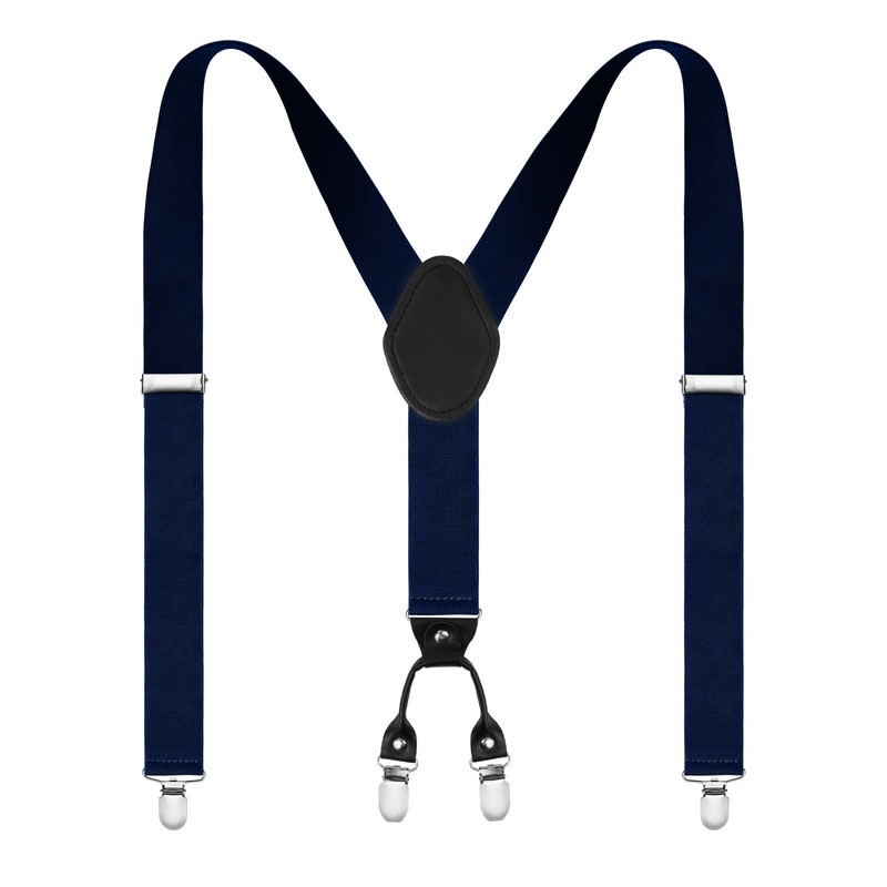 AUYAO Men's Braces Braces Extra Strong Wide 3.5 cm with Very Strong 4 Metal Clips Heavy Duty Men Braces Adjustable Elastic One Size Braces for Men and Women Y Shape, navy