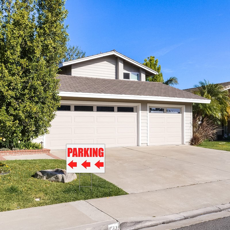 - Size: Parking Direction Sign 16X12inches, with 16X8inchs metal stakes. Sign are made with 5MM Corrugated Plastic, Waterproof, Durable and Reusable.
