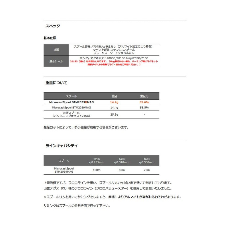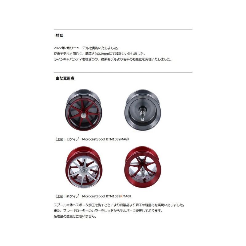 - Material: Spool part: A7075 Duralumin (colored with anodized color); Shaft: Stainless steel; Brake rotor: Duralumin