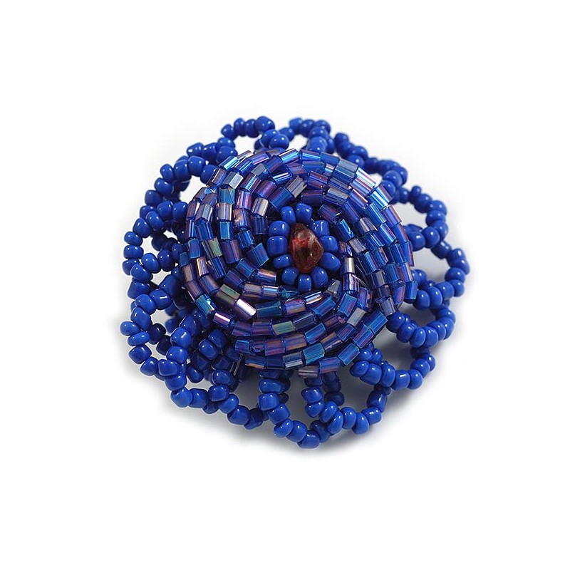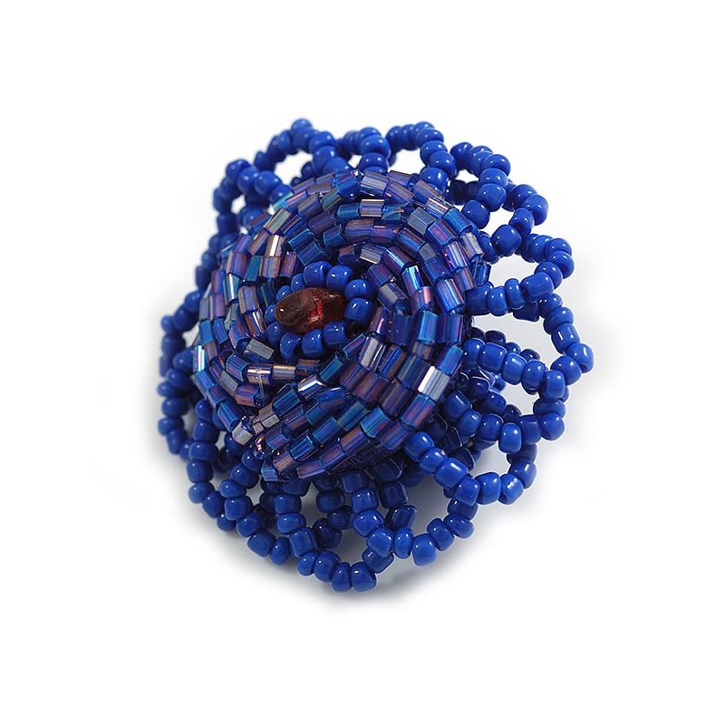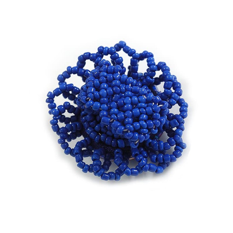 Avalaya 40mm Diameter/Blue Glass Bead Daisy Flower Flex Ring/Size M