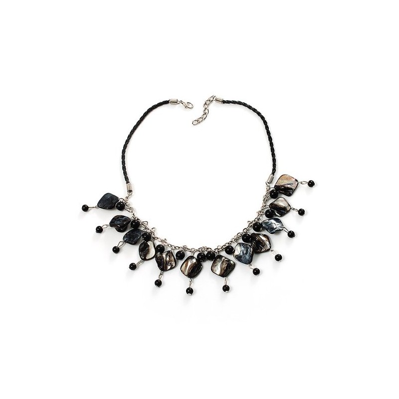 Avalaya Black Coloured Shell Composite Charm Leather Style Necklace (Silver Tone)