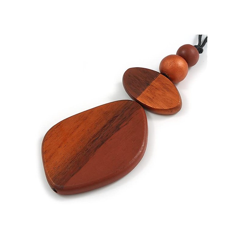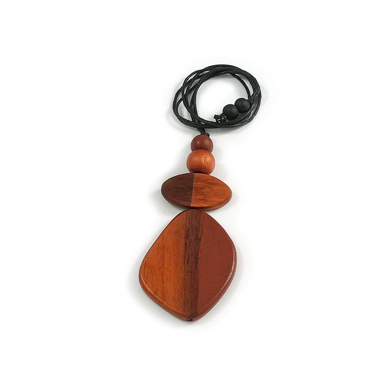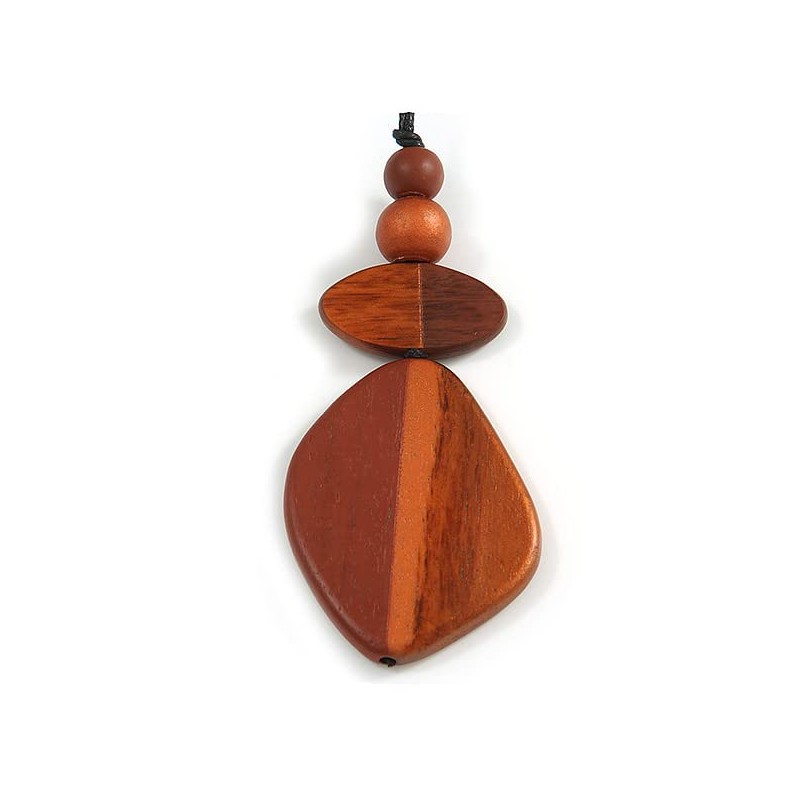 Avalaya Bronze/Brown Geometric Wood Pendant Black Waxed Cotton Cord - 80cm L Max/ 13cm