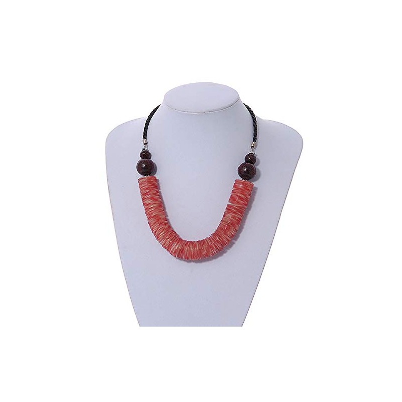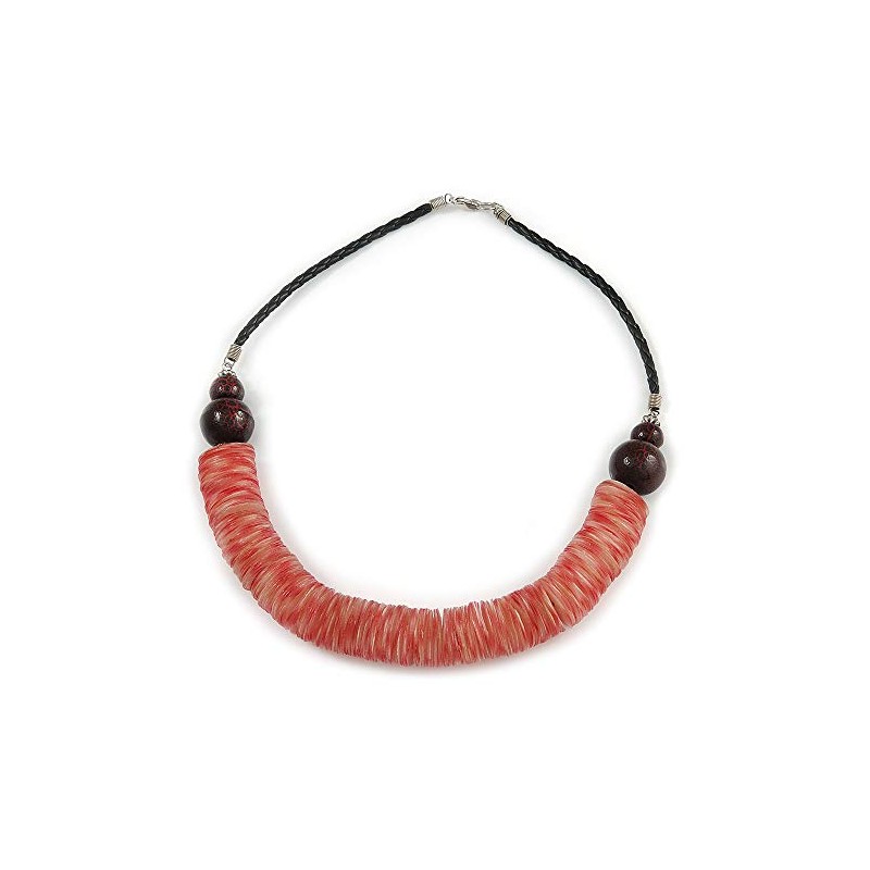 Avalaya Chunky Rose Red Shell Coin Necklace with Black Faux Leather Cord - 55cm L
