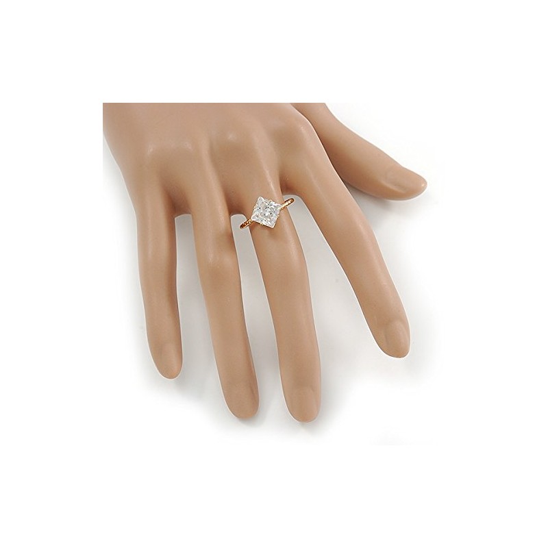 Avalaya Delicate Clear Princess-Cut Crystal Solitaire Ring In Gold Plating - Size 7