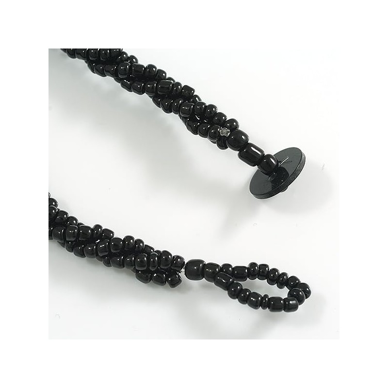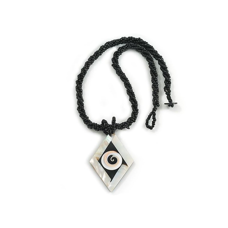 Avalaya Diamond Shell Pendant on Black Bead Twisted Cord Necklace in Silvery Grey/Black Colours - 44cm Long