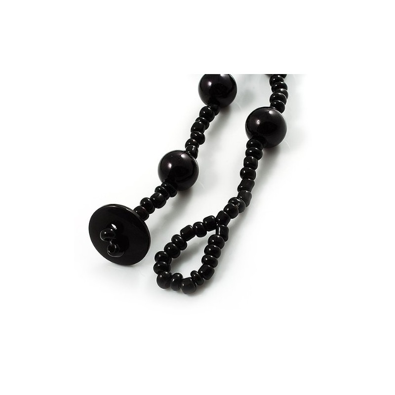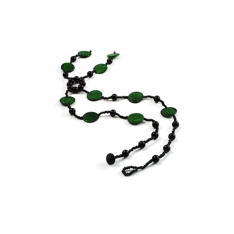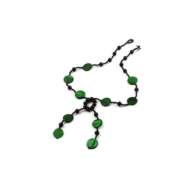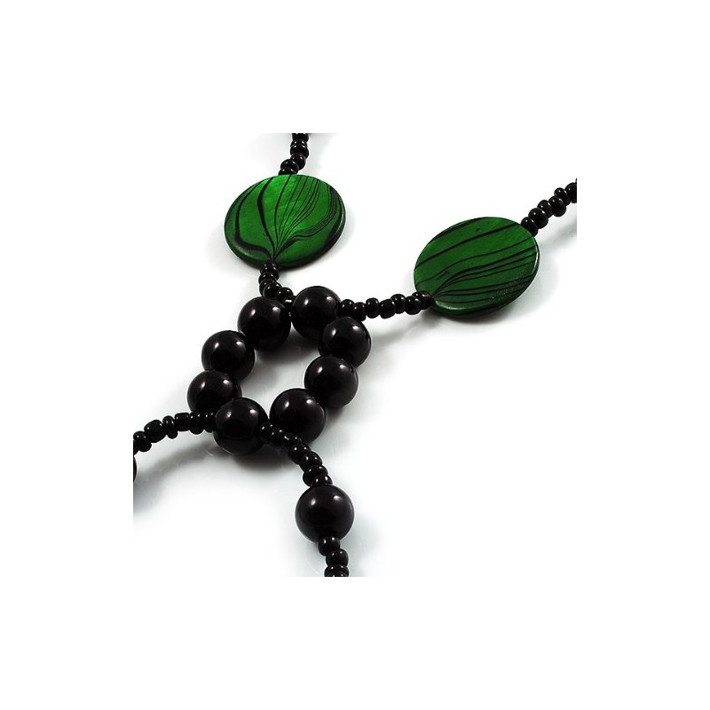 Avalaya Glass & Shell Bead Tassel Necklace in Bright Green & Black Colours/ 48cm L/ 11cm Tassel