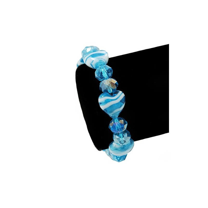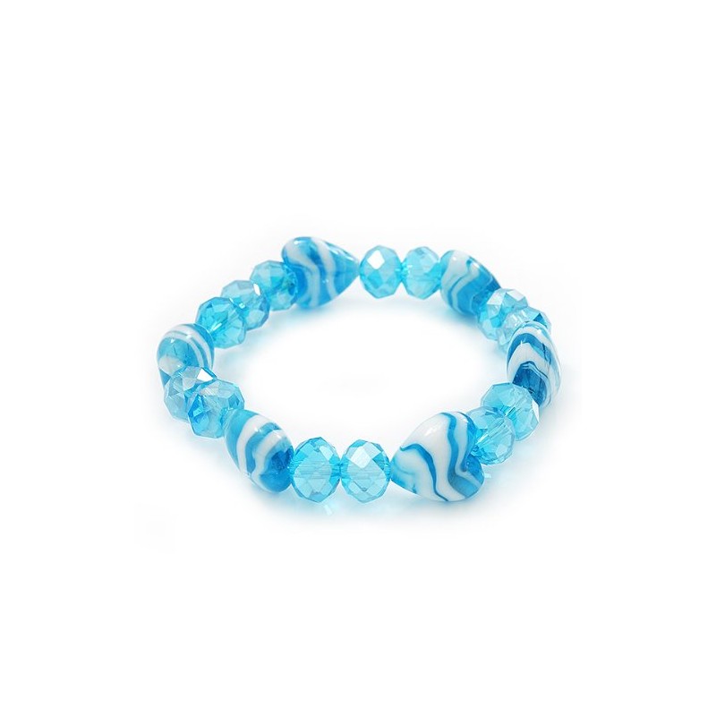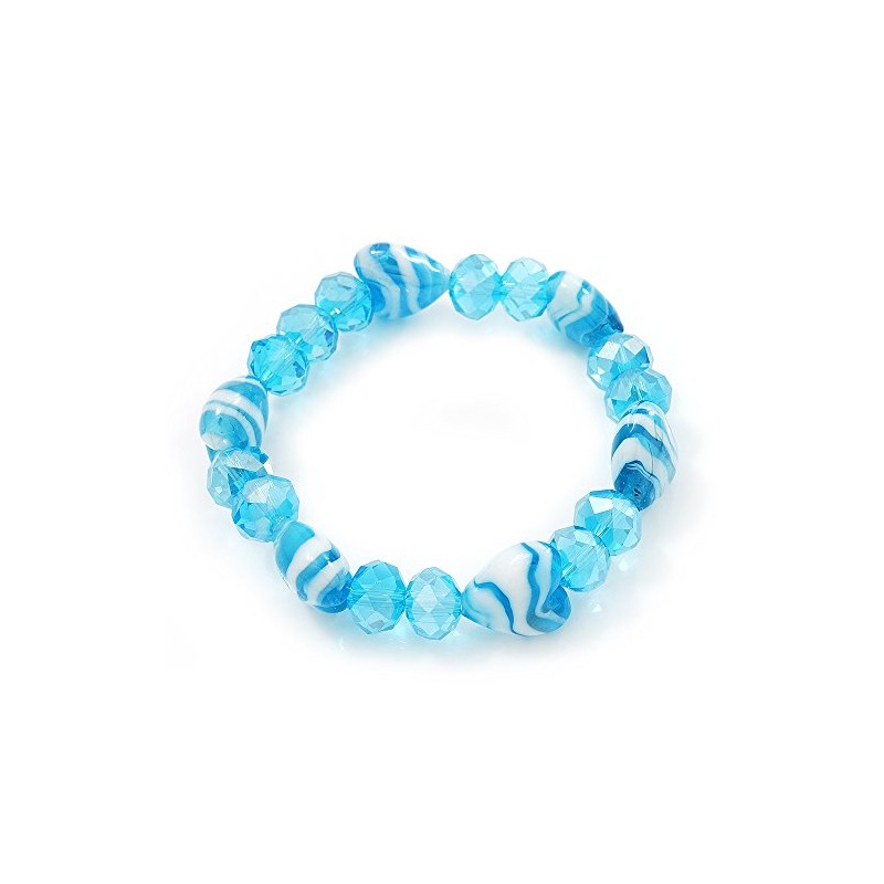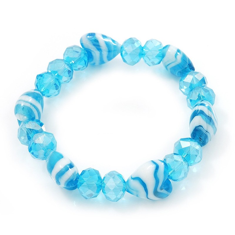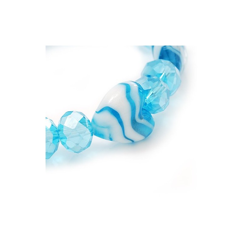 Refresh your style with this chic Light Blue Heart & Faceted Bead Flex Bracelet. Featuring a single strand design, made of heart and faceted glass beads in hues of light blue. Flex design expands to fit perfectly around your wrist. Will fit up to 18cm wrist Wonderfully pretty and easy to wear, this light blue glass bead bracelet looks fantastic with any outfit.