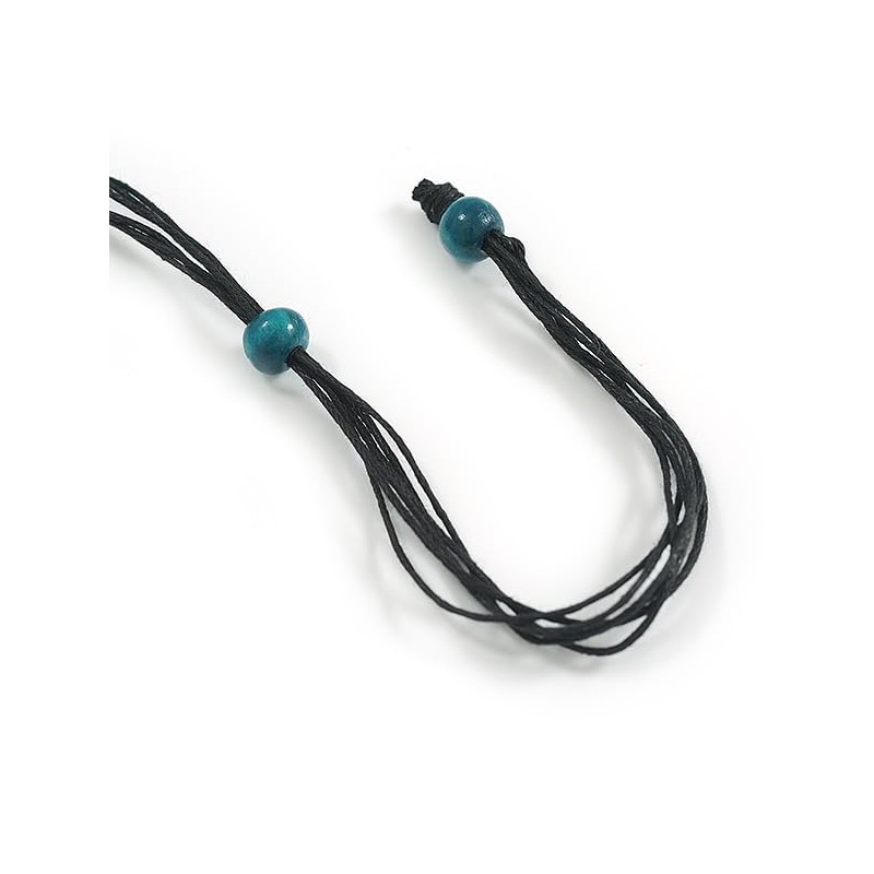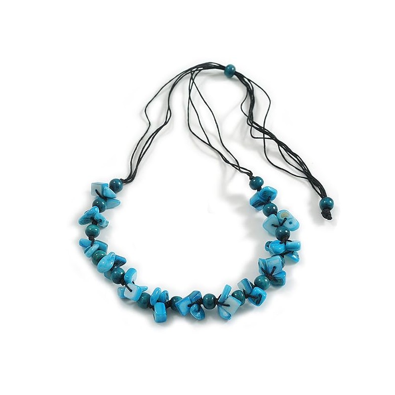 Avalaya Light Blue Shell and Teal Wood Beads with Black Cotton Cord Necklace - 80cm L/Adjustable