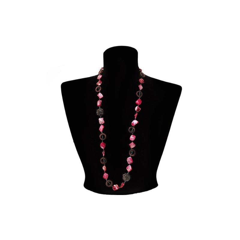 Avalaya Magenta Coloured Shell Composite/Wood Ring & Metal Wire Bead Long Necklace/84cm L