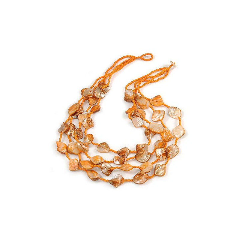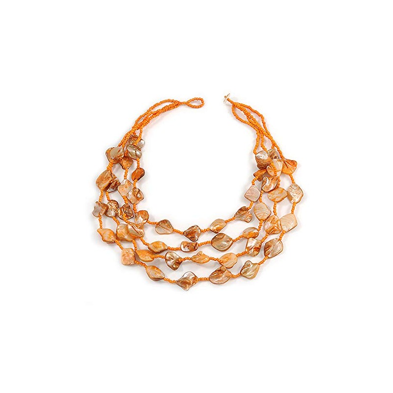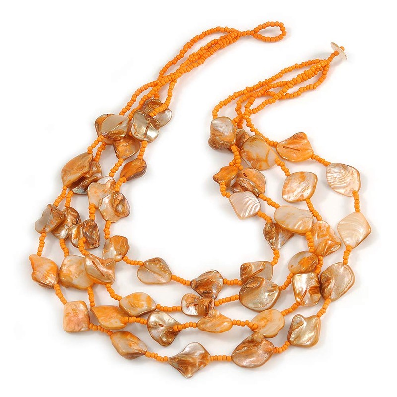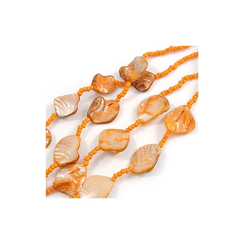 Avalaya Multistrand Layered Orange Sea Shell and Glass Bead Necklace/ 60cm Long